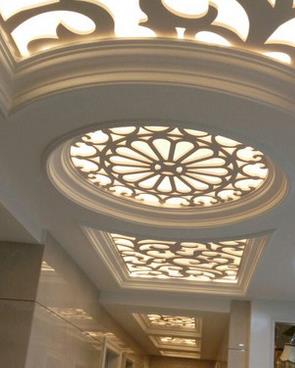 三、穹形吊顶:多见于别墅,或者尖屋顶的房间,要求空间低点大于2.6米,高点没有要求,通常在四五米左右。穹形吊顶即拱形或盖形吊顶,适合一些欧式或者偏欧式分装修风格。